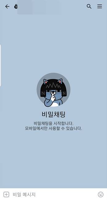 쉿하는 모양의 캐릭터가 나오면서 비밀채팅이 시작됩니다. 이제 1대1방은 이곳에서 이용을 하시면 됩니다. 그렇다면 카카오톡 채팅방 숨기기로 어떤 결과를 볼 수 있는지 알아보도록 하죠.