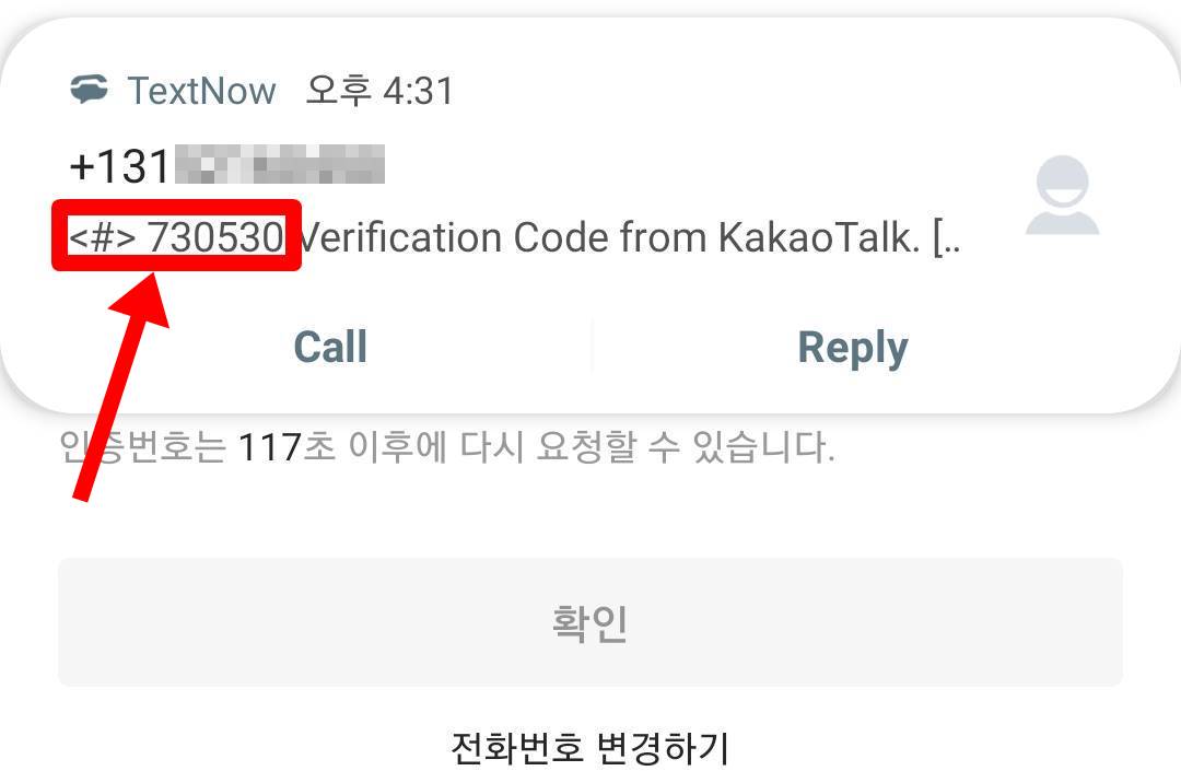 인증된 문자는 이렇게 알림창으로 표시가 되는데 <#> 뒤에 있는 6자리 번호를 입력해주시면 됩니다. 만약 알림이 안왔다면 텍스트나우 어플을 실행하면 확인할 수 있습니다.