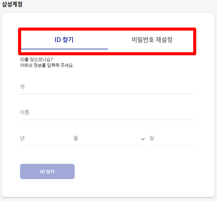아이디와 비밀번호는 나의 성, 이름, 생년월일만 넣어주면 쉽게 알 수 있습니다.
