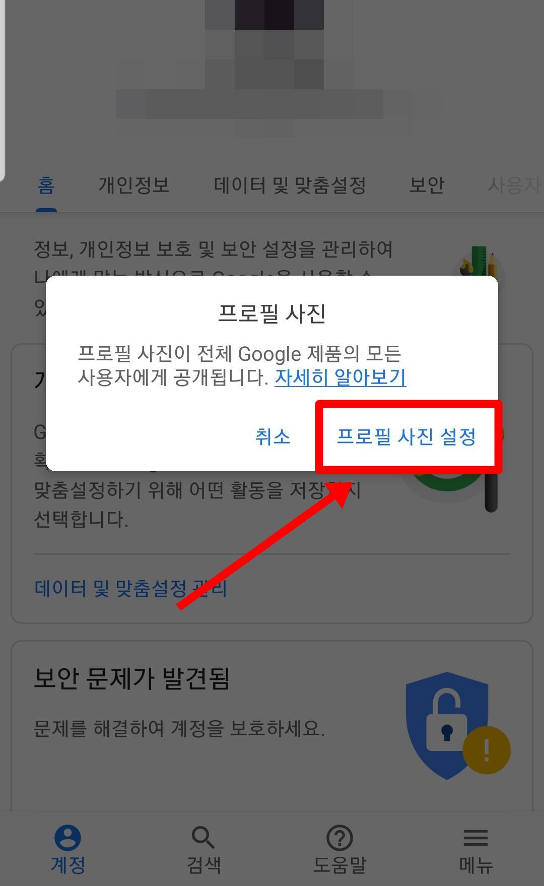 프로필 사진이 전체 구글 제품의 모든 사용자에게 공개된다는 소리는 유튜브에 적용이된다는 말과 같습니다. 프로필 사진 설정 버튼을 눌러줍니다.