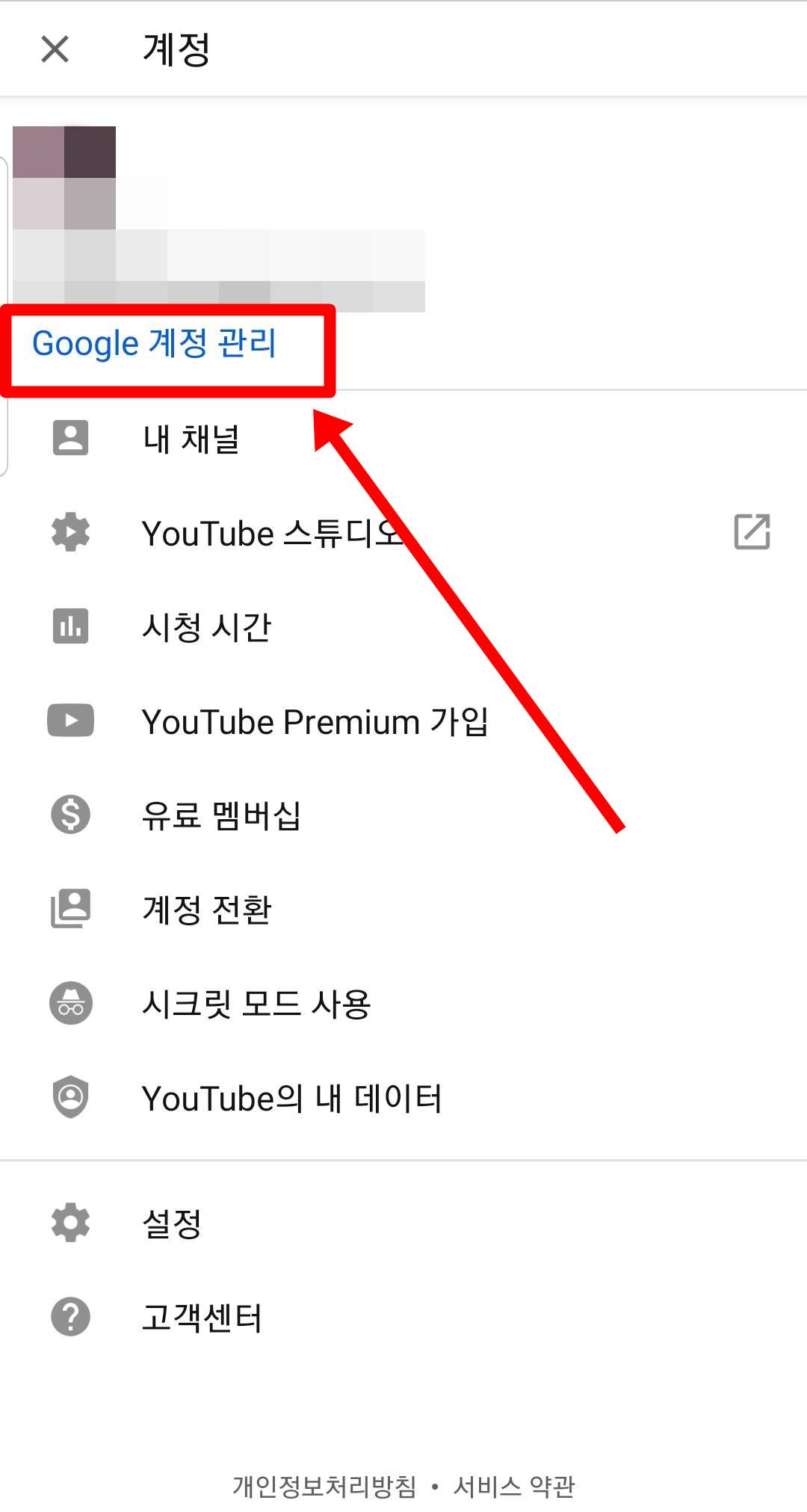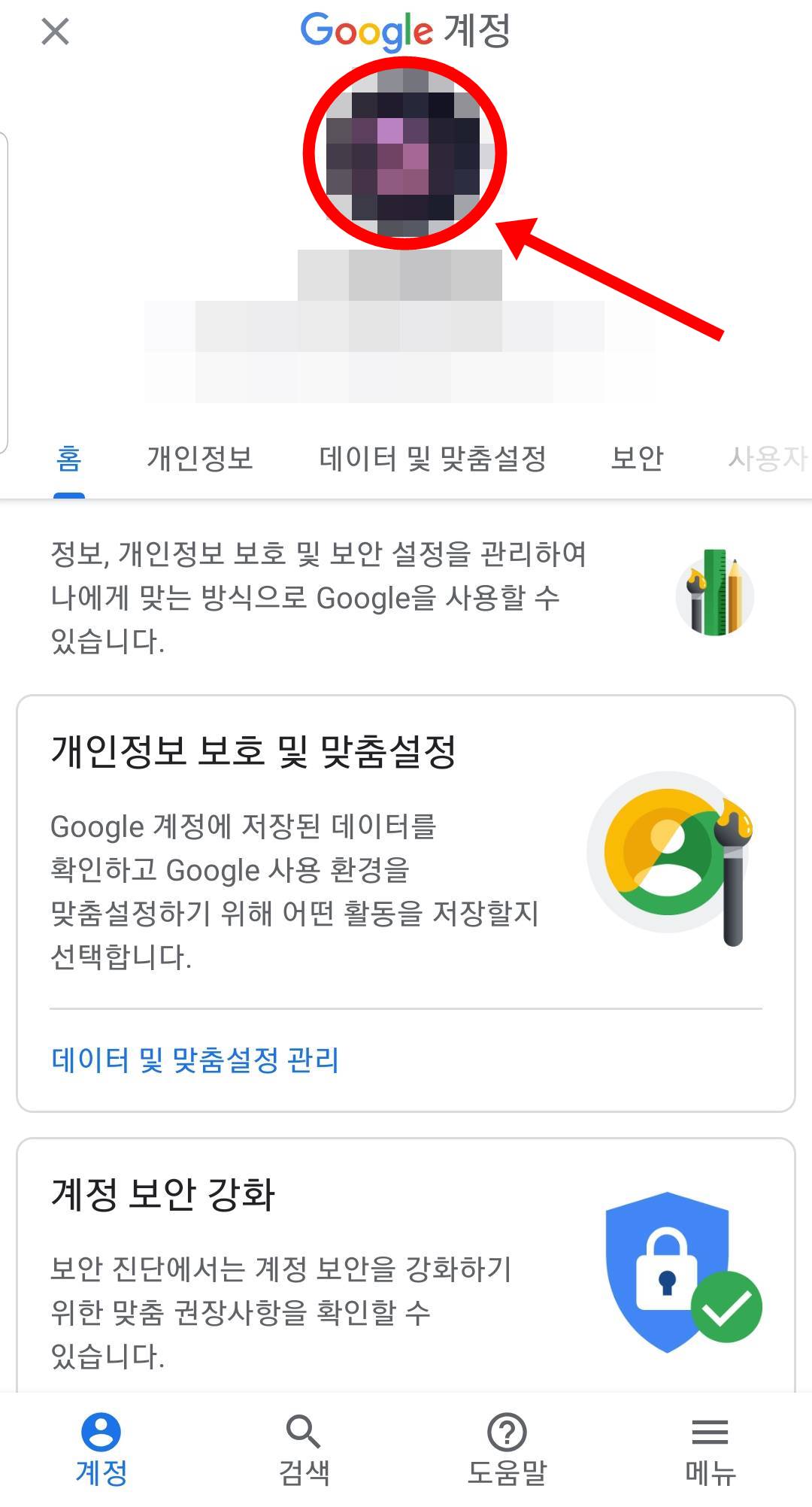 내 프로필 사진과 계정주소 아래에 Google 계정 관리라는 버튼 링크가 있습니다. 누르시길 바랍니다.