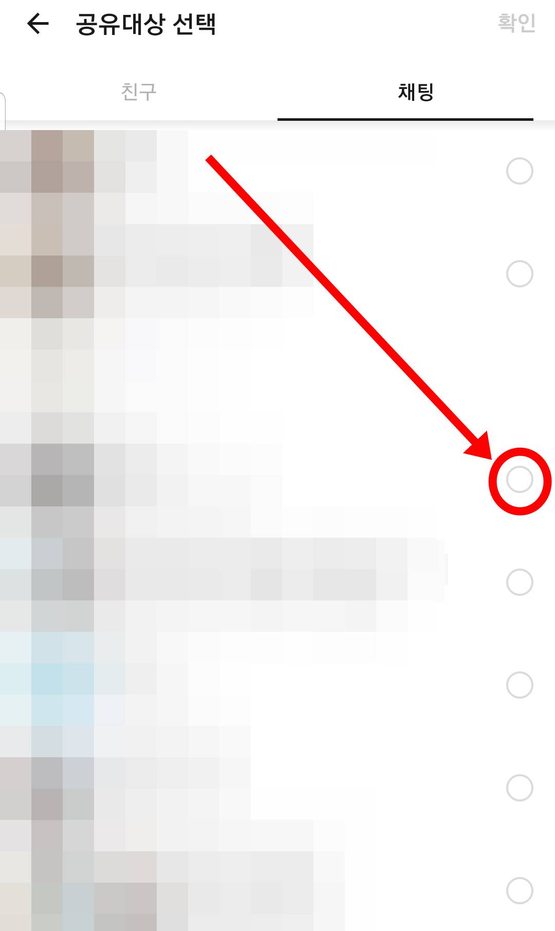 친구나 채팅에서 공유하고 싶은 상대방을 체크한뒤 확인을 눌러주시면 됩니다.