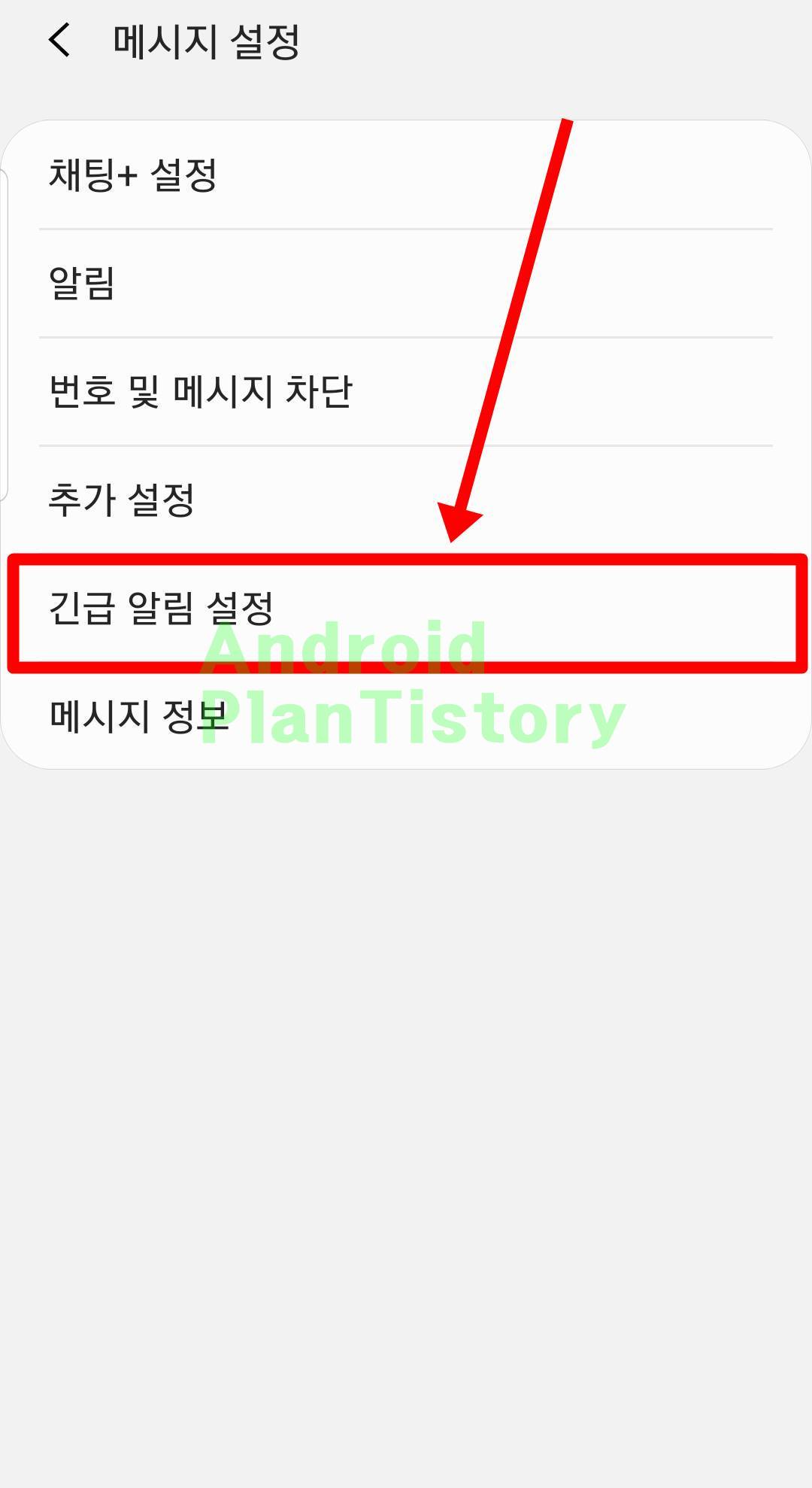 설정을 클릭하시면 메시지 설정이 나오는데요. 이곳에서 긴급 알림 설정으로 들어가주세요.